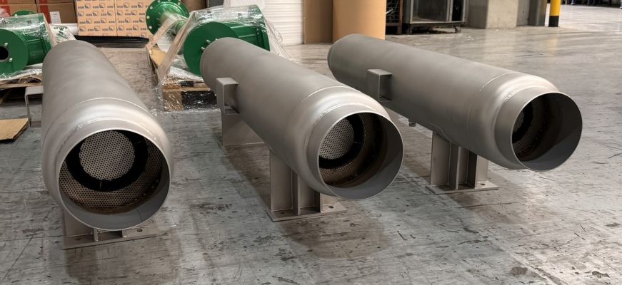 Silencer completely in SS304 for atmospheric discharge on a cooking and cooling process at a food plant.
